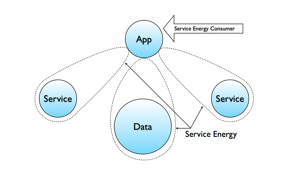 It should be noted in the picture above that the Data is made accessible through a service which is why it has Service Energy around it, which should be distinguished from Data Gravity. Remember, Service Energy does NOT attract, but can amplify.